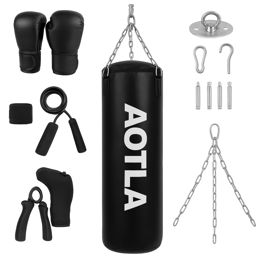 Sac de frappe suspendu robuste, idéal pour tous les sports de combat. Conçu en matériaux résistants, il supporte des entraînements intensifs et améliore puissance, précision et endurance. Facile à installer et personnalisable en poids (à remplir selon vos besoins), il assure stabilité et durabilité.